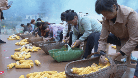 “剥玉米”比赛现场,参赛选手手指翻飞,有的三排并作一排剥,有的用双手左右拧搓,使巧劲将玉米粒一颗颗剥离剥落,争分夺秒进行限时5分钟的“冲刺”,吸引不少游客走近观看。