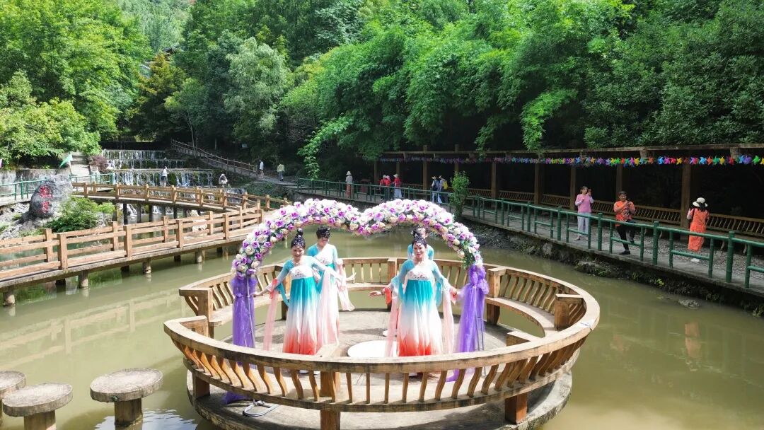 龙潭河景区推出“仙韵龙潭 共庆双节”活动,将景区打造为“巨型剧场”,以景观为布景、服务人员为角色、活动为剧情,让游客成为“主演”,吸引游客络绎不绝。