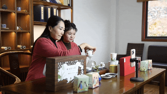 清晨的涧池乡淘宝村,薄雾还未散尽,湖北七夕茶业生物科技有限公司的电商直播间已热闹起来。主播彭茜手持茶汤,热情地向网友推介:“这一款是一个瘦美人的花香茶,咱们里面加了我们的玫瑰花,重瓣玫瑰,茉莉花……”。与此同时,AI智能直播间的数字人主播也同步“上岗”。