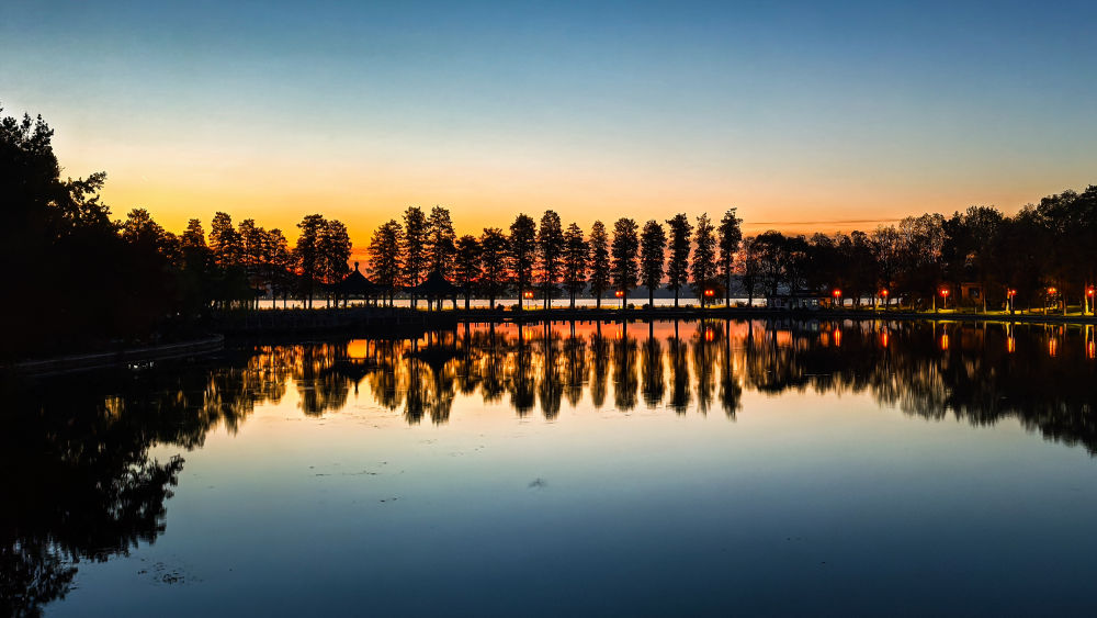 11月16日在武汉市东湖风景区拍摄的朝霞。新华社记者 沈虹冰 摄