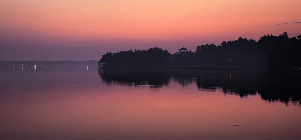 12月14日在武汉市东湖风景区拍摄的日出。新华社记者 沈虹冰 摄
