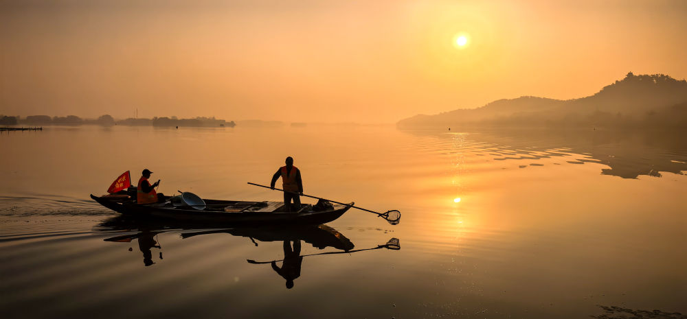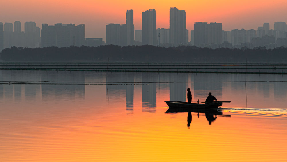 11月16日,工作人员在武汉市东湖风景区进行清漂作业。新华社记者 沈虹冰 摄