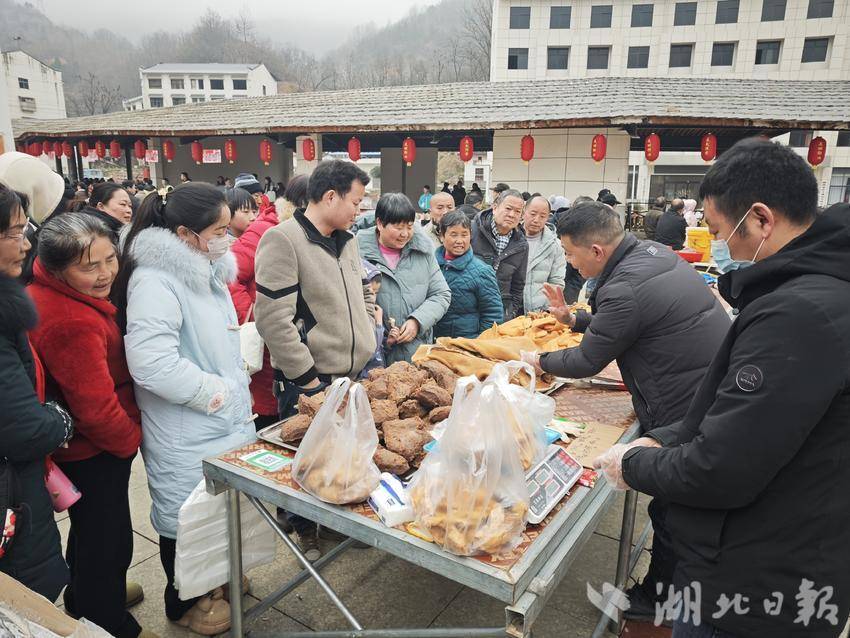 农产品展销区,人头攒动,肉质鲜嫩的马头山羊、辣中带甜的拐枣酒、金黄油亮的腊味,数十种本土优质农特产品吸引不少外地游客驻足挑选、争相采购。“本地年货新鲜实惠,一站式买齐太方便了!”游客何女士边选边赞道。