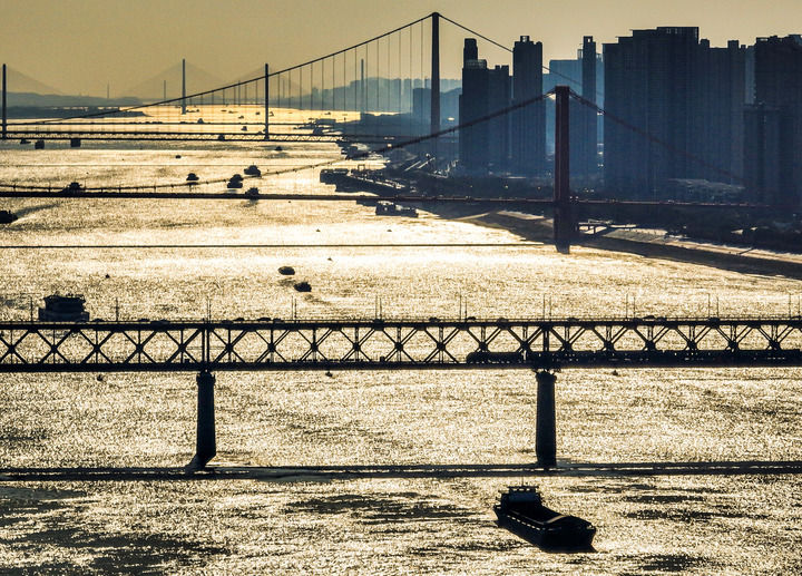 “水运上的湖北”巨轮穿梭——全省港口货物吞吐量过亿吨的大港数量突破5个,位居全国内河第1。长江中游航运中心、中欧班列华中区域集结中心打通亚欧陆海联运新通道。