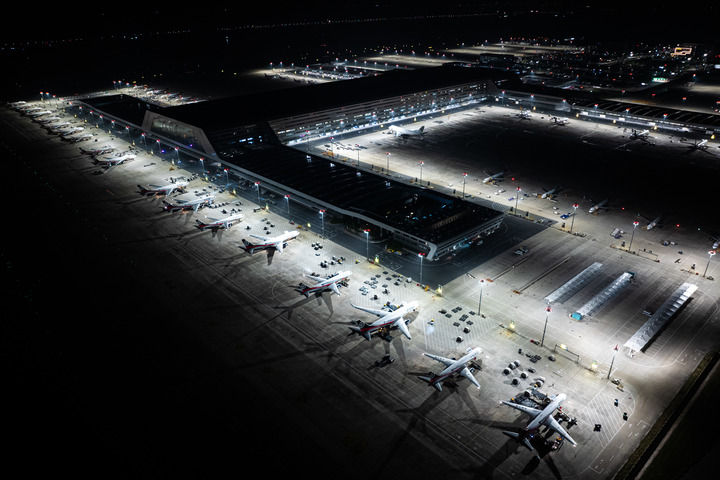 2025年7月11日凌晨拍摄的鄂州花湖国际机场停机坪一角。