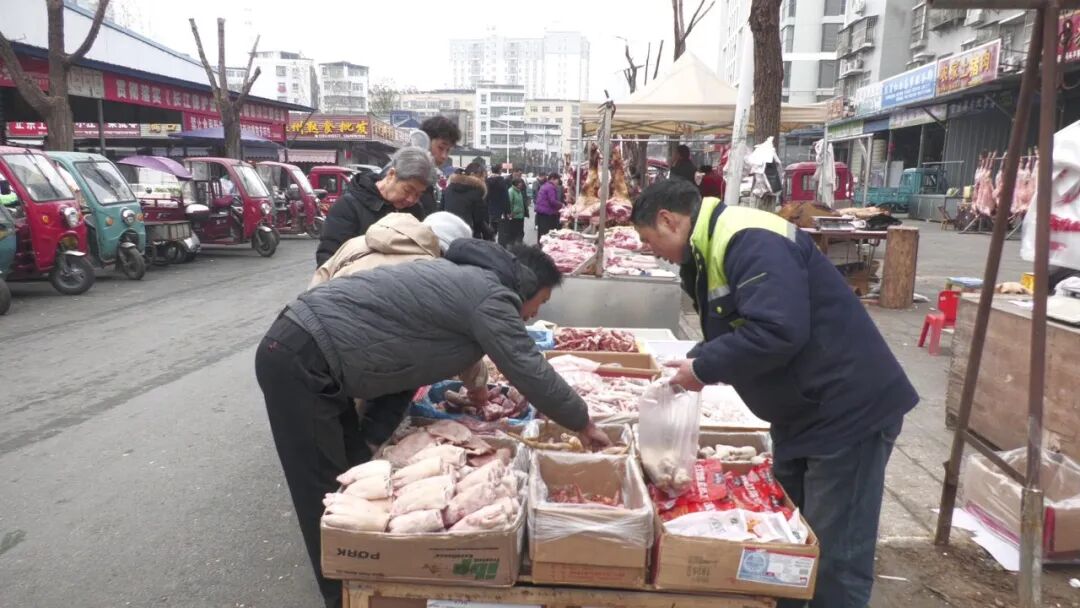 同样火爆的还有城区各大菜市场,在小河农贸市场牛羊肉、猪肉等各类生鲜、储备充足、供应稳定,水产区里活鱼翻腾购买人群络绎不绝。