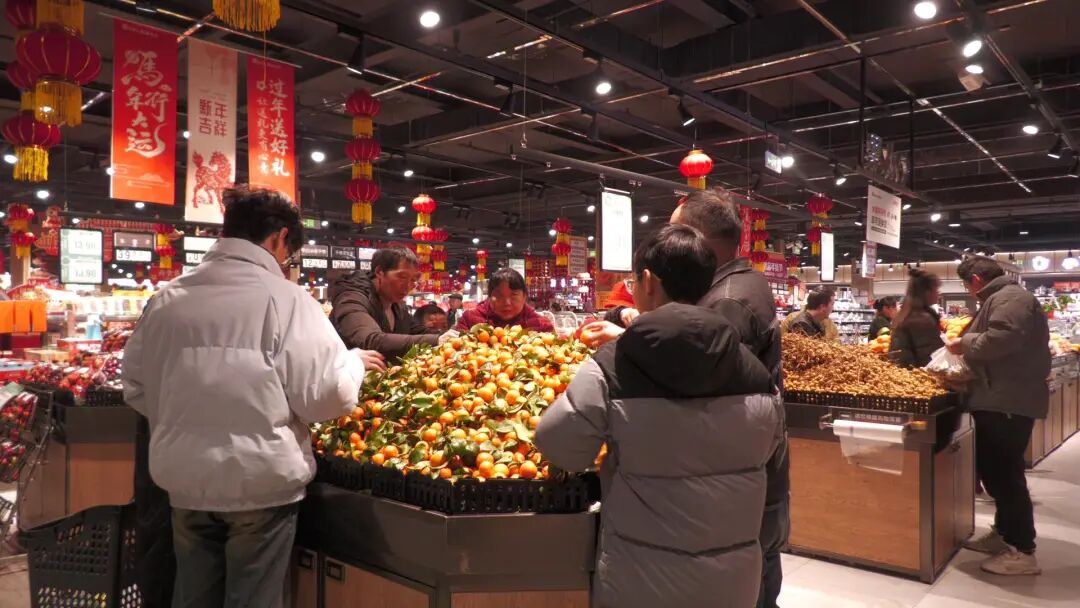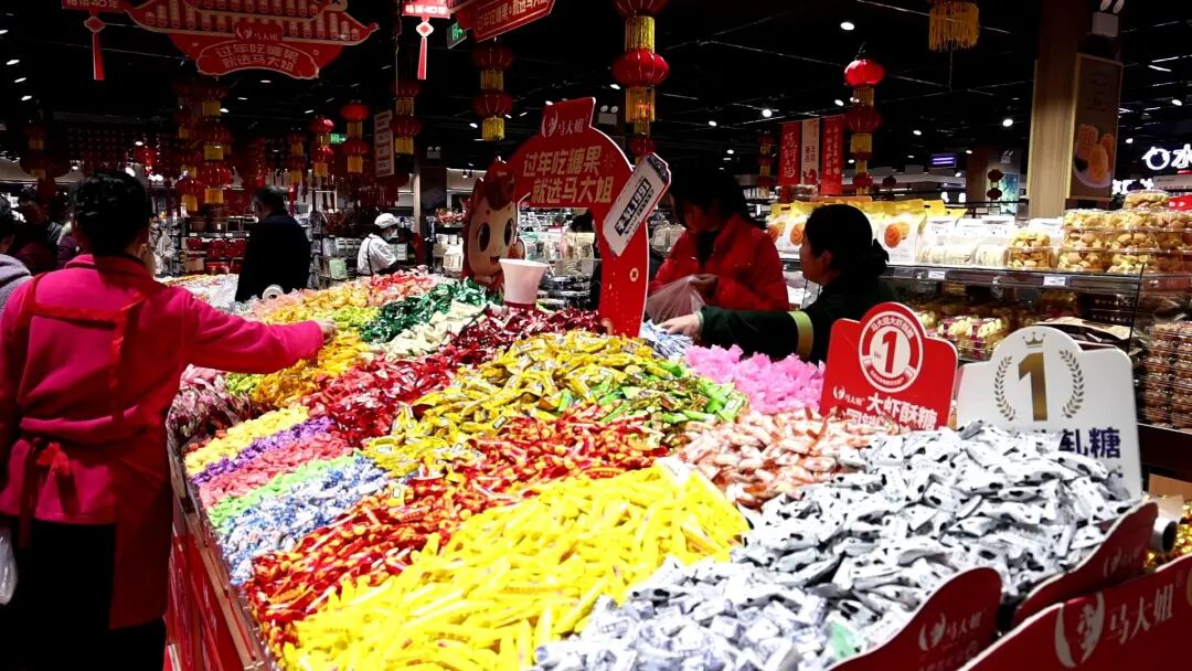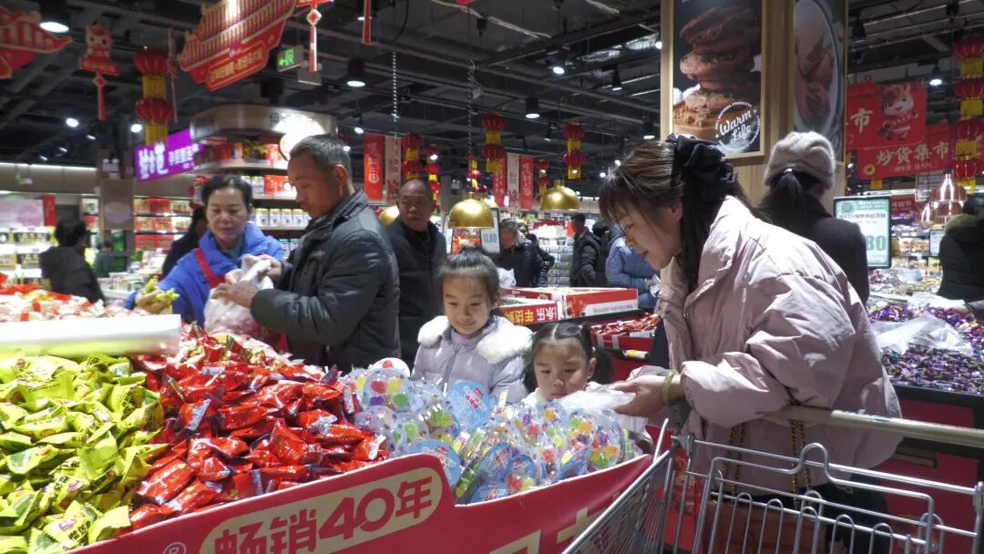 “家里小孩比较多挑了点小朋友爱吃的糖果、水果,还买了一些礼品包走亲访友的时候可以用”,采访中顾客陈丽高兴地说道.