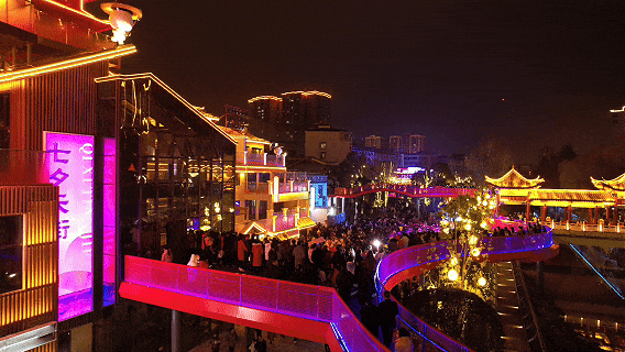 作为郧西县文旅消费新地标,七夕天街按照“一核一带三街七巷”布局,在完整保留老北街与明清古建筑风貌的基础上,巧妙融入现代设计元素,打造集文化体验、观光游览、商业消费、休闲住宿于一体的低碳文化休闲综合体,让古韵与时尚交相辉映。