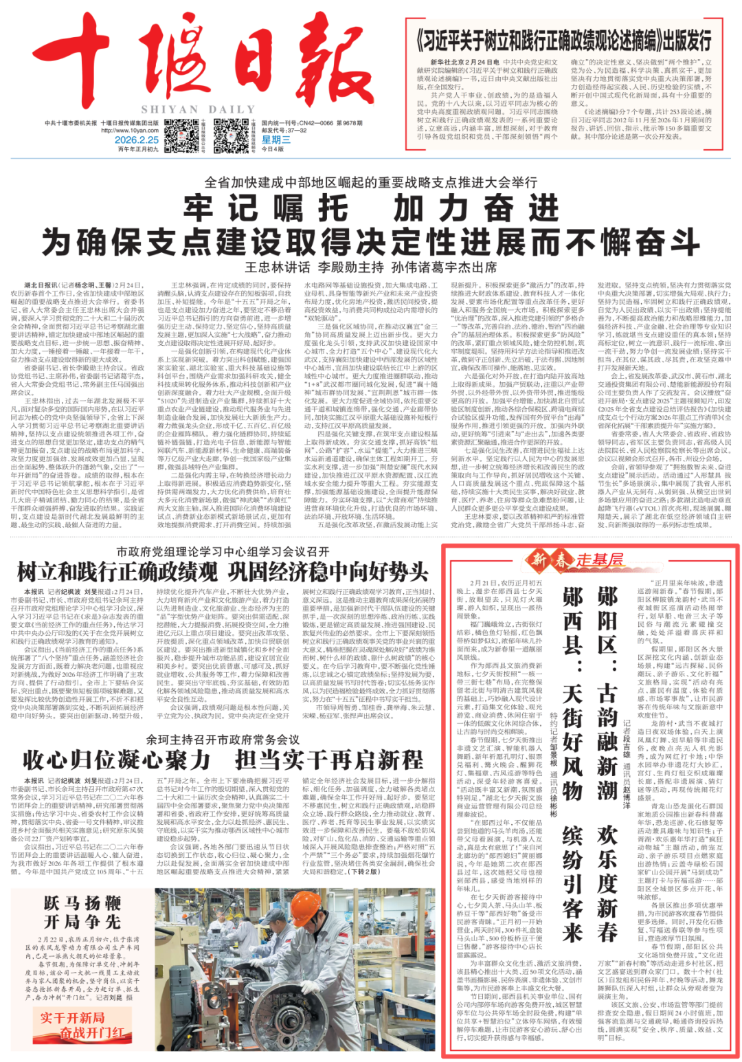 2月25日,《十堰日报》A01头版发表《郧西县:天街好风物 缤纷引客来》聚焦郧西文旅新地标七夕天街,通过打造特色场景创新活动载体、优化服务供给、激发文旅消费活力,切实提升群众获得感、幸福感。