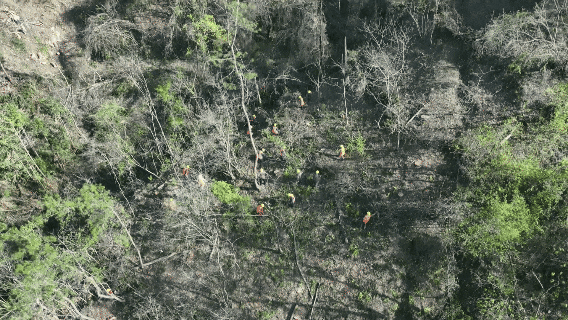 “以前林子太密,树下光秃秃的、没生机。我们来了以后,按作业设计,先把目标树、干扰树做好标记,同时开展抚育间伐,清理长势差、有病害的树木,给优质林木留出空间;再在林间空地、疏林地补植彩叶树种。陡坡地段机械上不去,就人工背苗、电镐打窝,一棵棵栽种。现在林分层次清晰、色彩丰富。”施工员王恩炎介绍道。